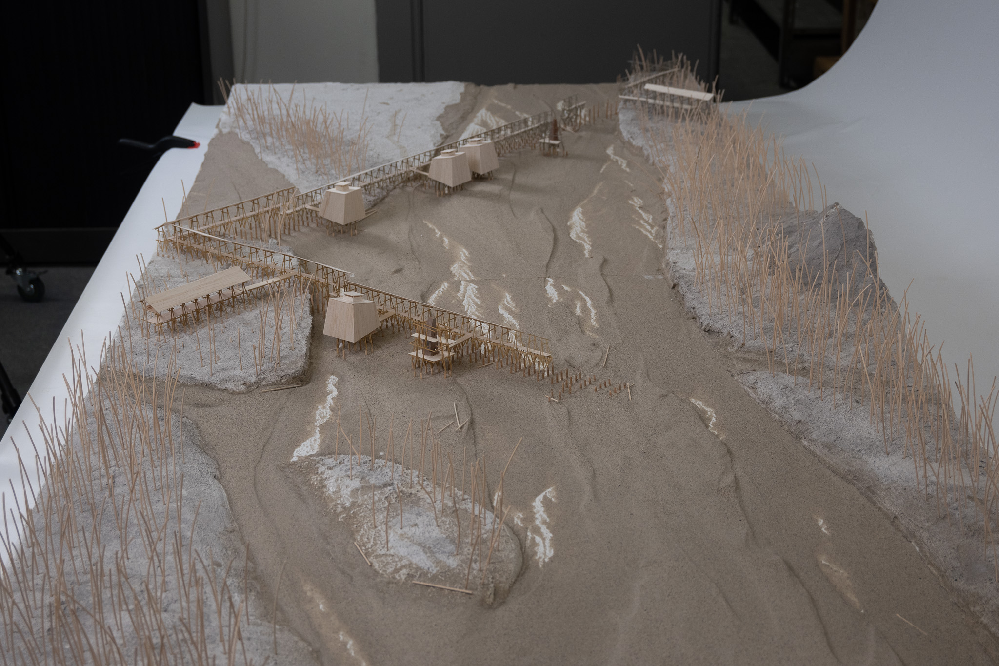 Den fotografiske komponenten dokumenterer landskapet ved ulike årstider og tider på dagen, og sporer den samme romlige opplevelsen over måneder. Disse bildene informerte materialpaletten og de tektoniske valgene til det arkitektoniske forslaget og lukket løkken mellom observasjon, forskning og produksjon.