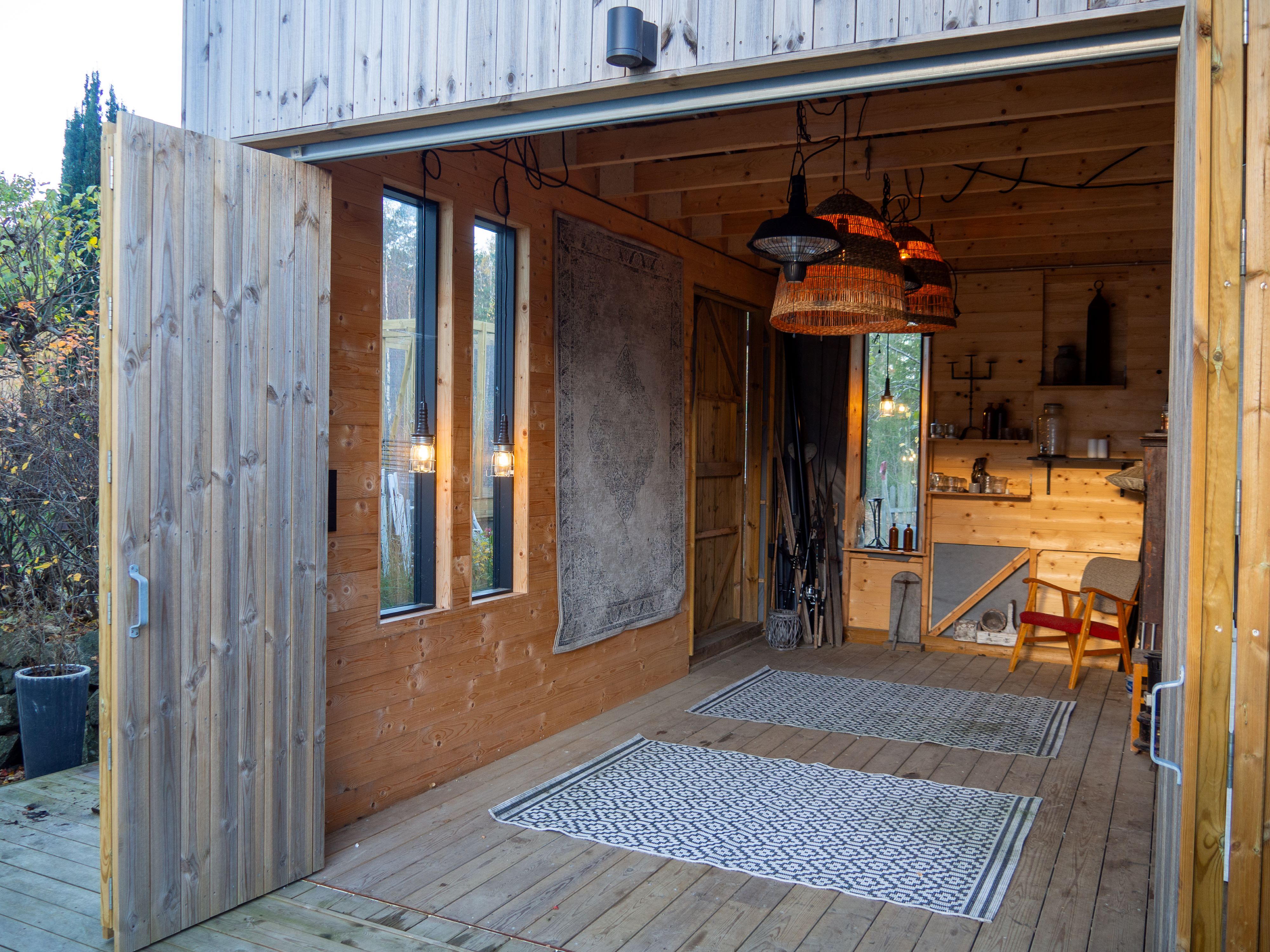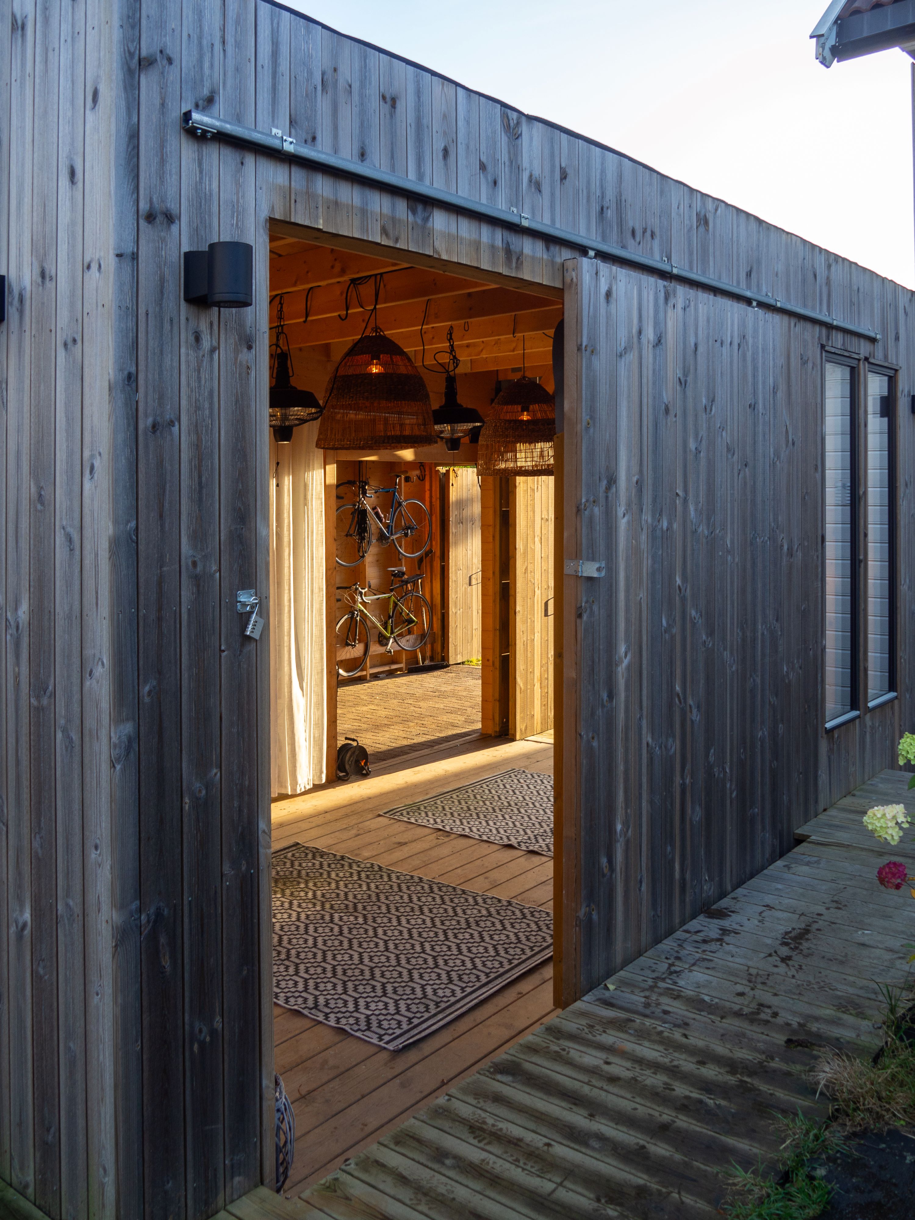 The main objective of this project was to design an addition to my parents house with a flexible program. They wanted a dry place tp park their cars, but also a space that could extend as a showcase room for my dads' art, as well as a place to do bbq or social happenings if it rains. The two sides are connected with an opening between them.