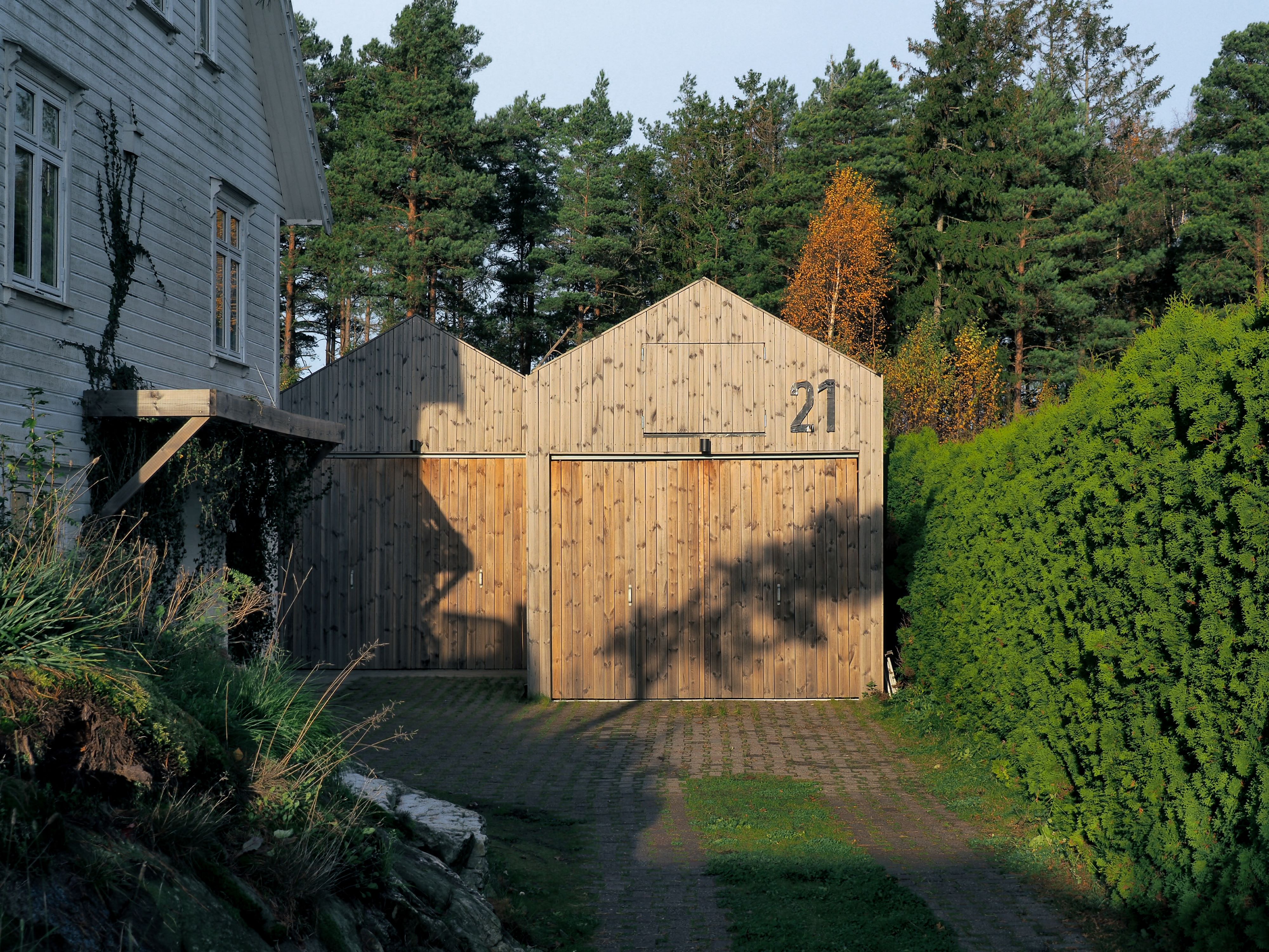 A adição Bjørnåsen House é um projeto de extensão residencial no distrito arborizado de Bjørnåsen, ao sul de Oslo. A casa existente, de estilo chalé, fica em um terreno inclinado com longas vistas para o fiorde, e a adição foi projetada para expandir a área habitável preservando a qualidade íntima e integrada da estrutura original.