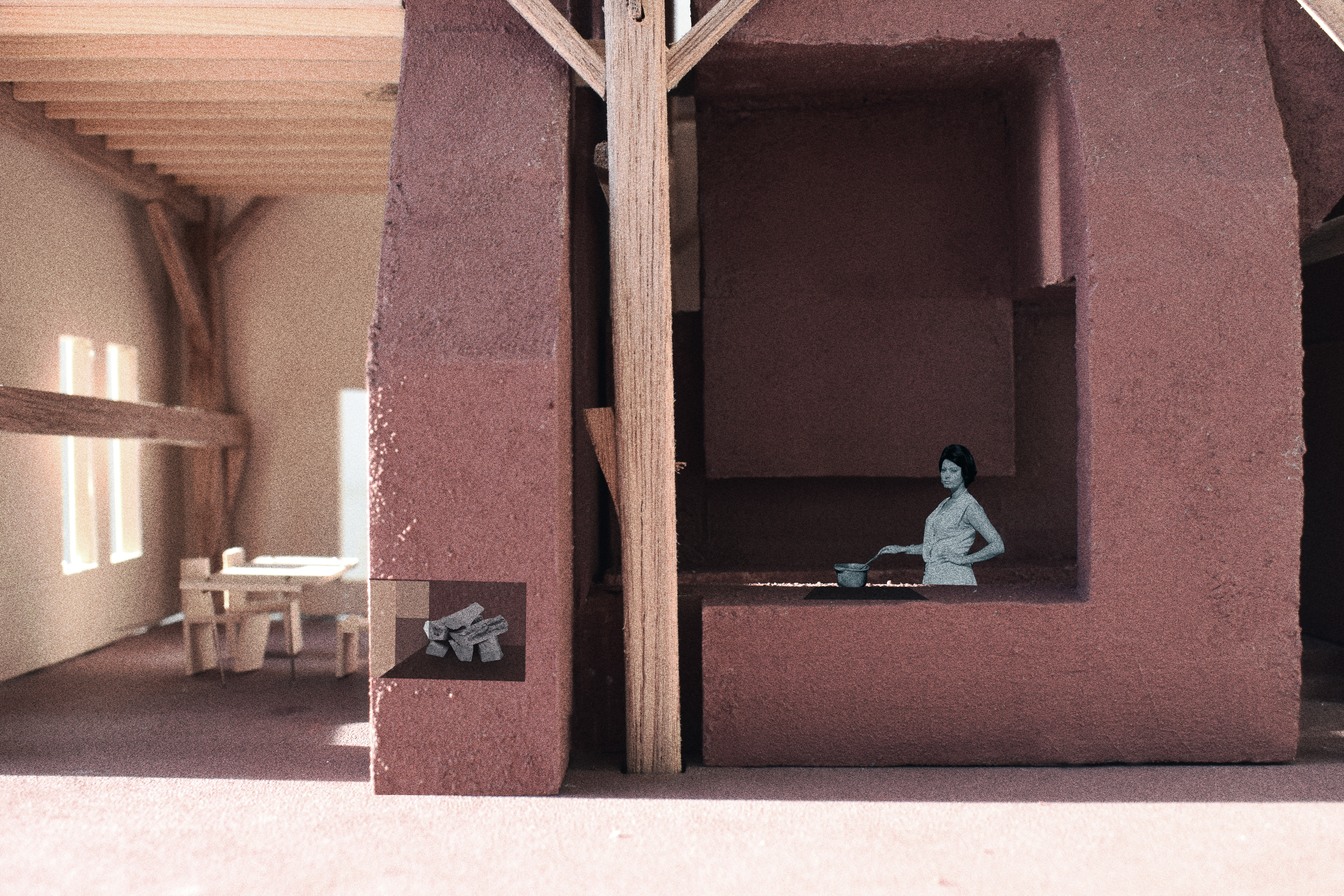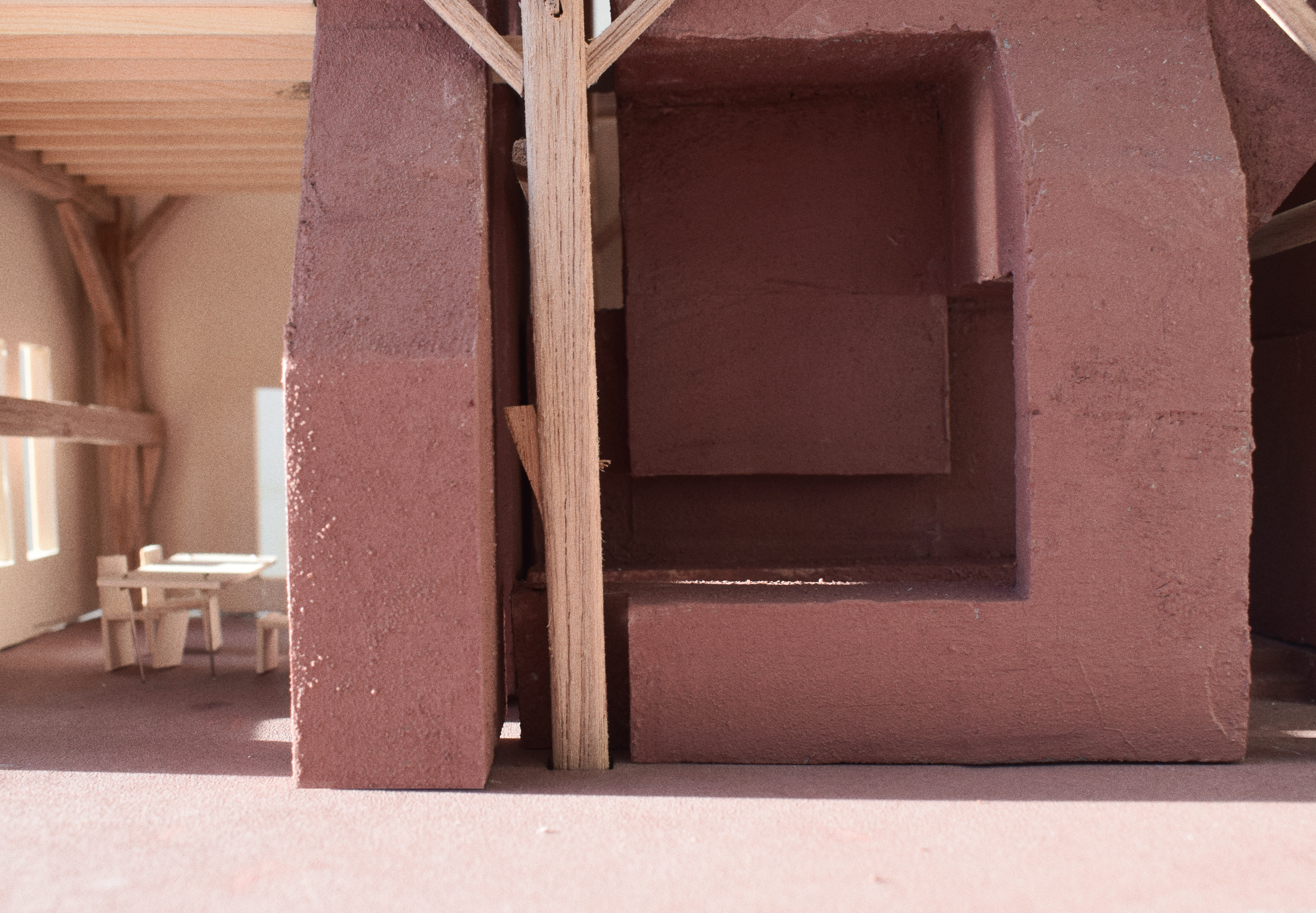 Our role as interns focused on modeling and design the spaces through modelmaking. Iterating on the layout of the core to ensure it to fit within the existing wooden structure. We began the process by analyzing and understanding the existing wooden structure, creating a model of the wooden beams and colums to use as a base for designing the core.